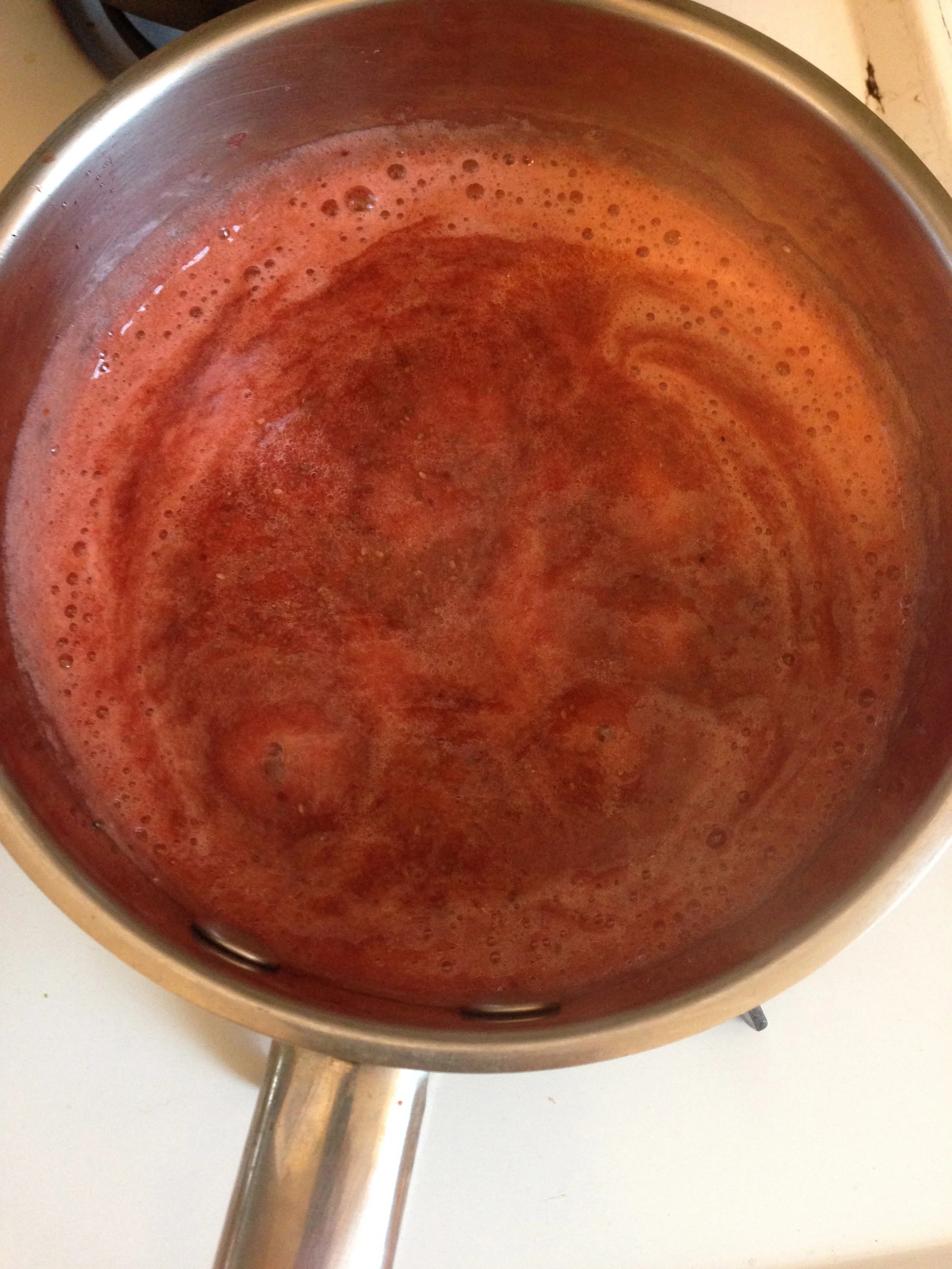 Wash and quarter the fresh strawberries (thaw the frozen). Place the berries, maple syrup, and vanilla in a pot and slowly bring to a simmer. Allow the berries to cook unitl they are tender. About 10 to 15 minutes. If they look like they may stick, you can always add a LITTLE water to the pan. Once the berries are soft, use the blender or hand blender the buzz until super smooth.