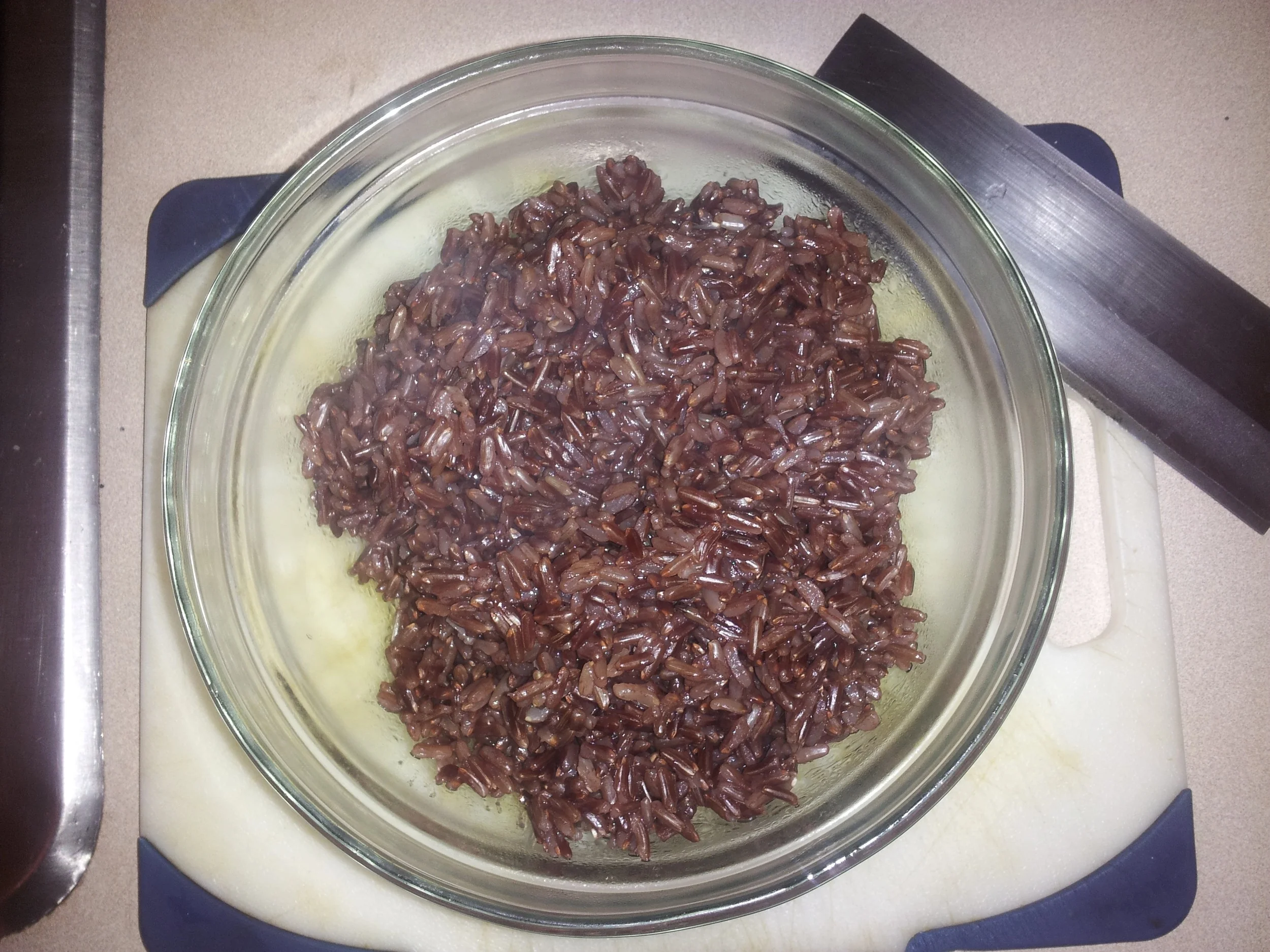 Coconut Ruby Rice with Kumquat Ginger Dressing over Fresh Kale
